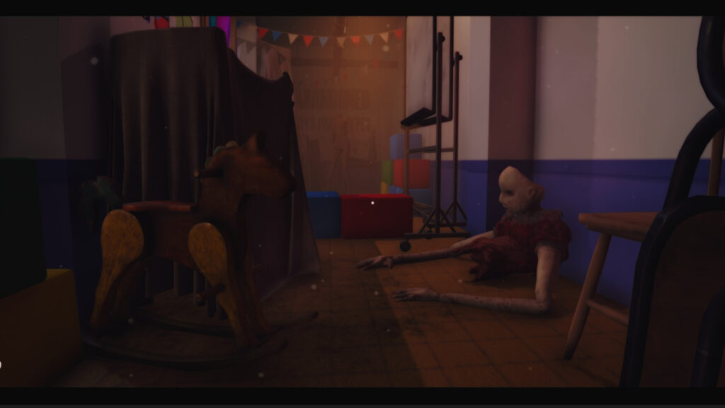 Baby Blues Nightmares unfolds over five chilling chapters, starting in the toddler’s home and then venturing into a childcare center. The first two chapters are more linear, giving players a clear narrative to follow. But once you hit Chapter 3, things open up—literally! You’ll be free to roam the childcare center, uncover lost toys, and tackle objectives in whatever order you choose. It’s all about how deep you want to dive into the nightmare.